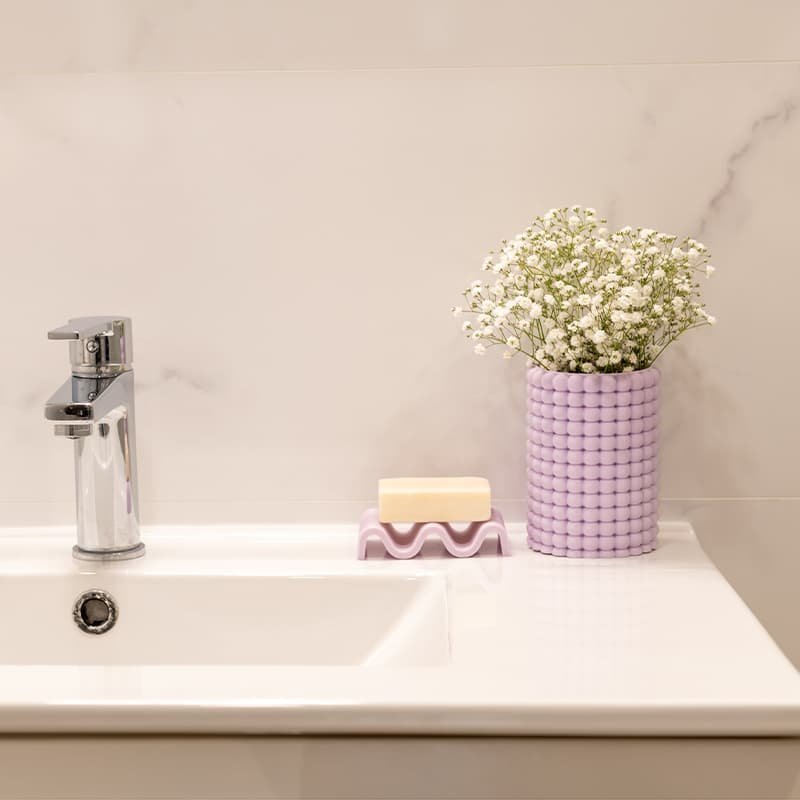 La Jabonera Hallo es ideal para aquellos que desean añadir un toque de elegancia moderna a su baño. Su diseño ondulado no solo es una pieza central atractiva, sino que también ofrece una solución práctica para el almacenamiento del jabón. Colócala en tu lavabo para disfrutar de la combinación perfecta de funcionalidad y estilo.