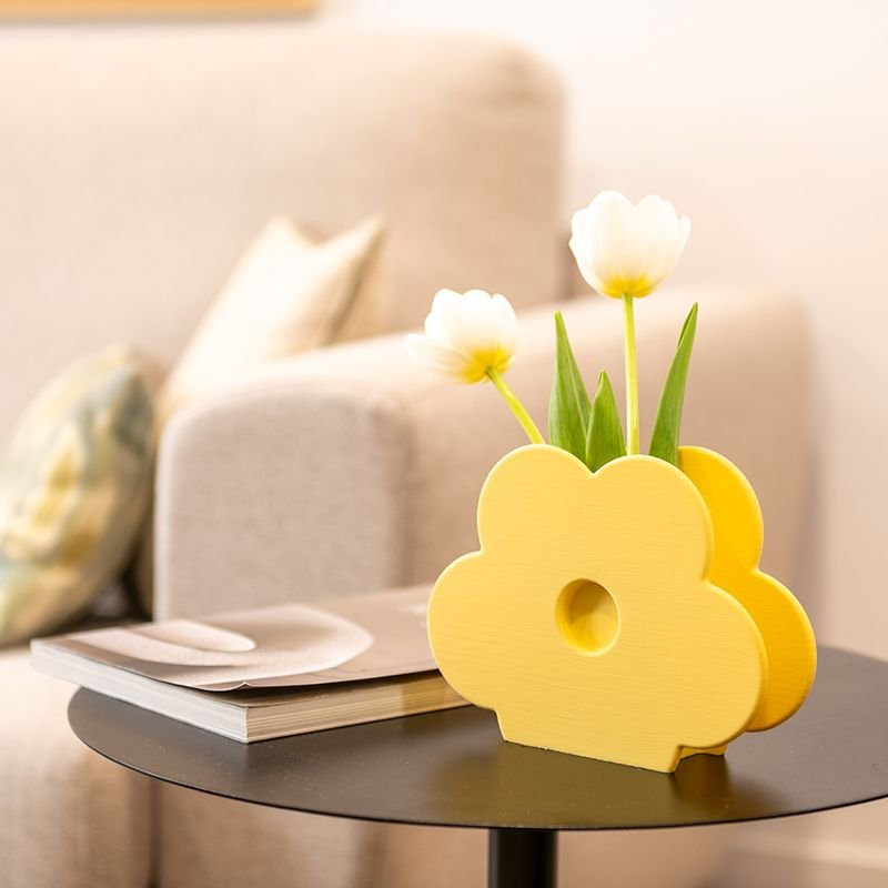 Jarrón con forma de margarita que transforma cualquier rincón.