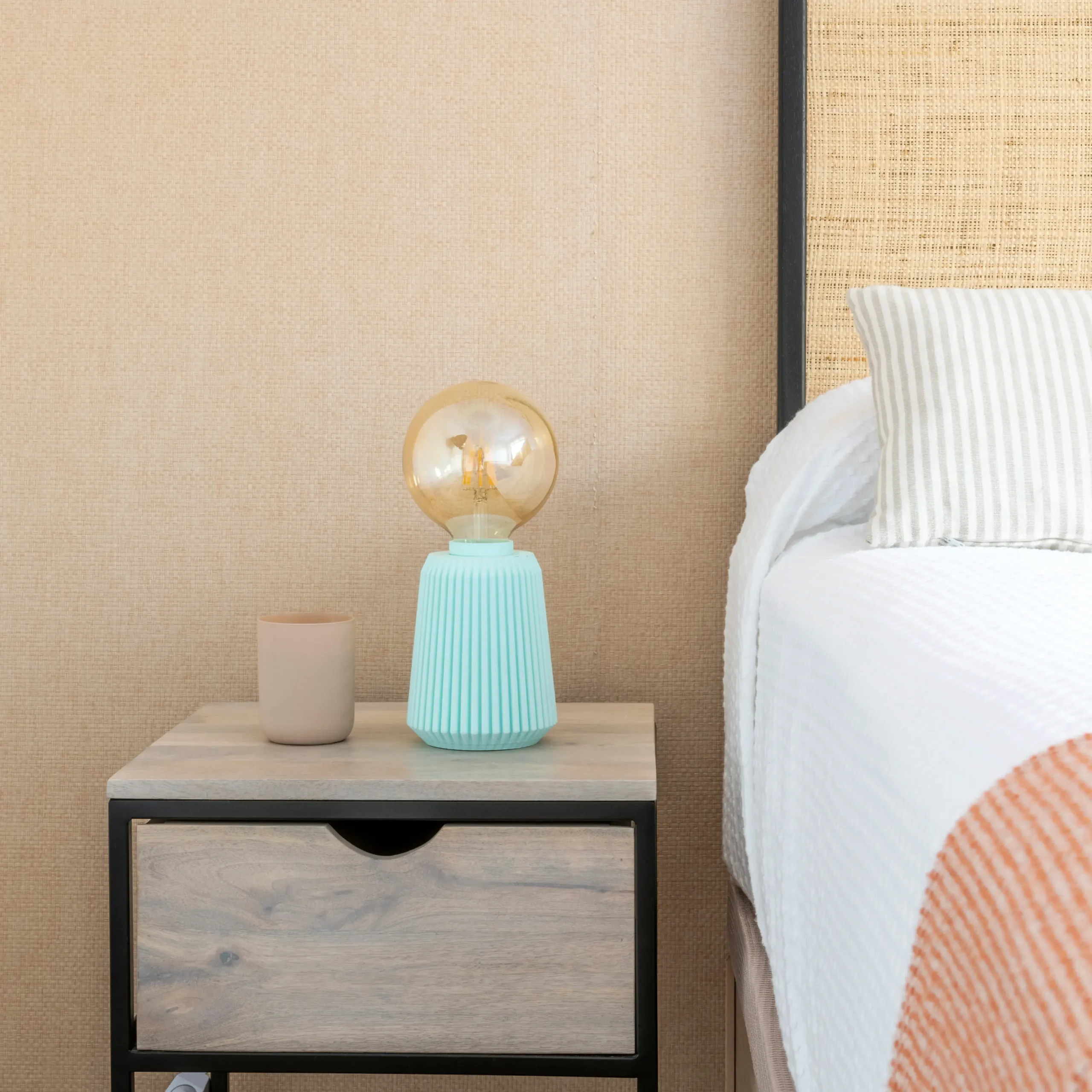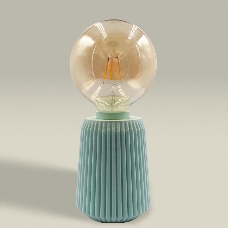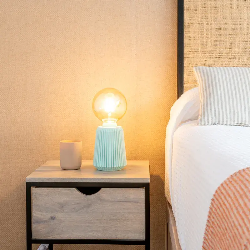 Lámpara de mesa con base sencilla pero con personalidad acompañada de una bombilla que, además de regulable, encaja tan bien que parece pensada solo para ella.